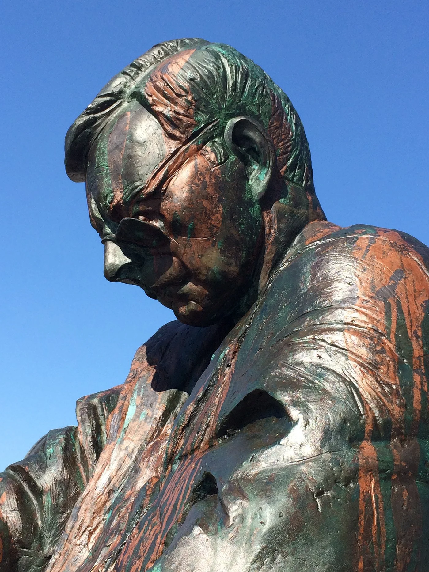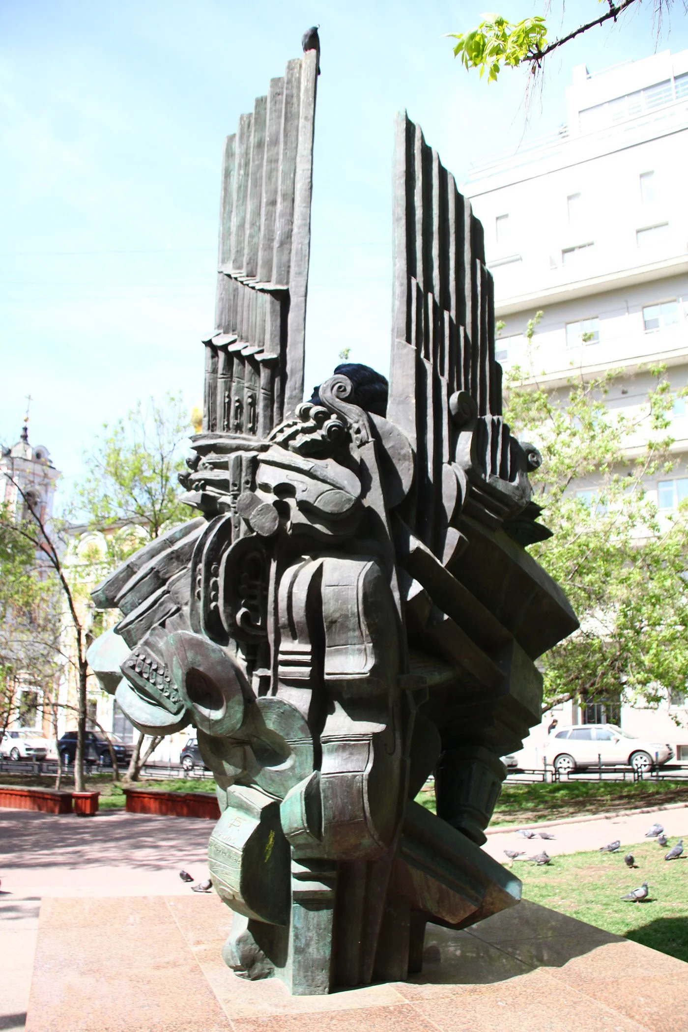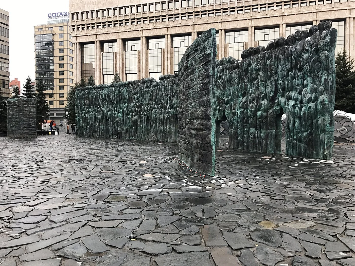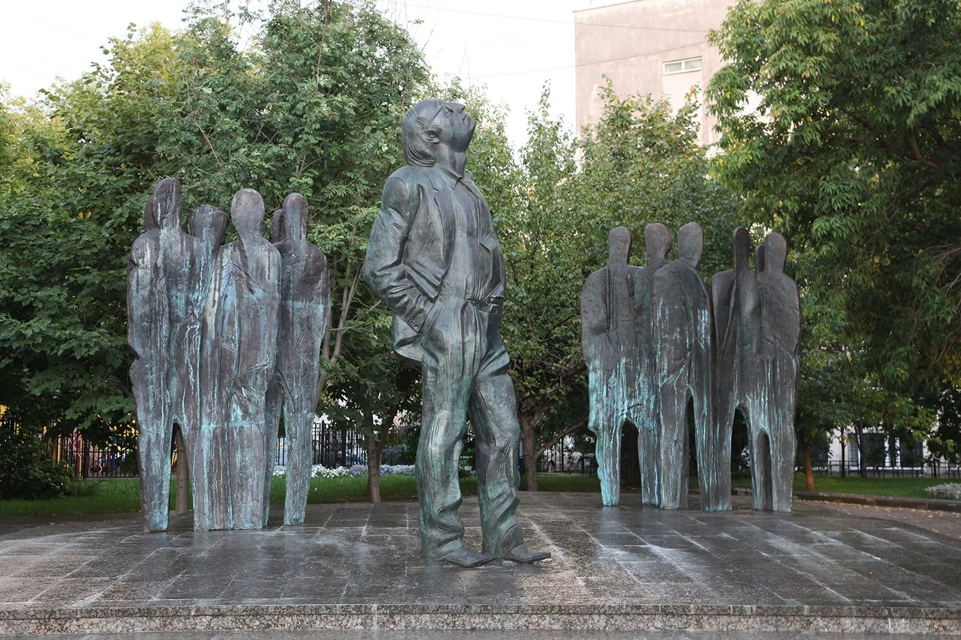 Frangulyan’s post-academic oeuvre began and continues through public monuments. They are core to his work. Bronze is the medium, accompanied by rock, often granite. His scaled works are a parallel, but distinct, practice, which includes sculpted reliefs, funerary monuments, and pure, creative expressions, figurative and abstract. His chosen media are traditional ones, yet diverse: clay, rock, sheet metal, and wood. His work is handmade. It is not specifically brand recognizable. Frangulyan draws prodigiously; he paints vigorously.